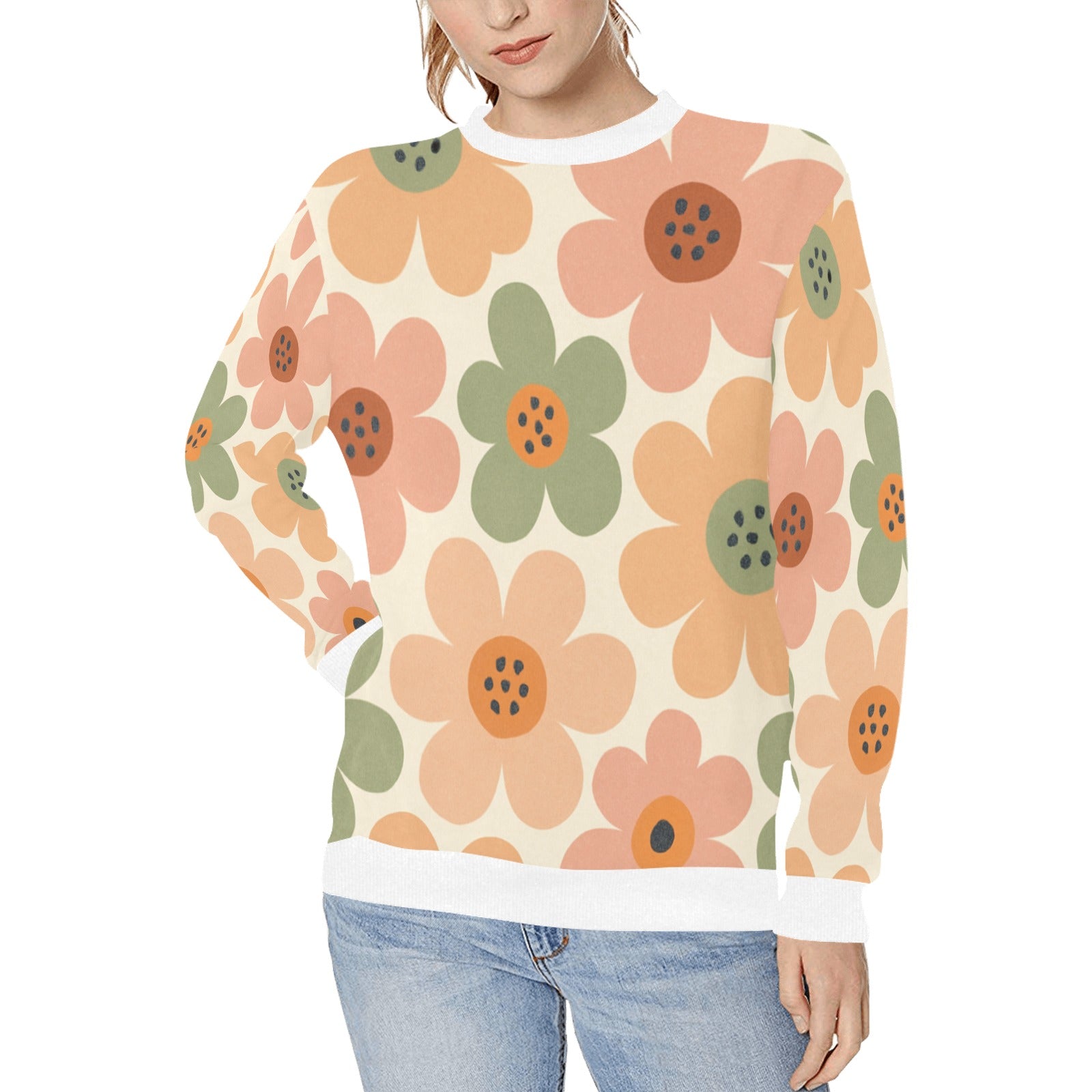 Women's Rib Cuff Crew Neck Sweatshirt (H34)