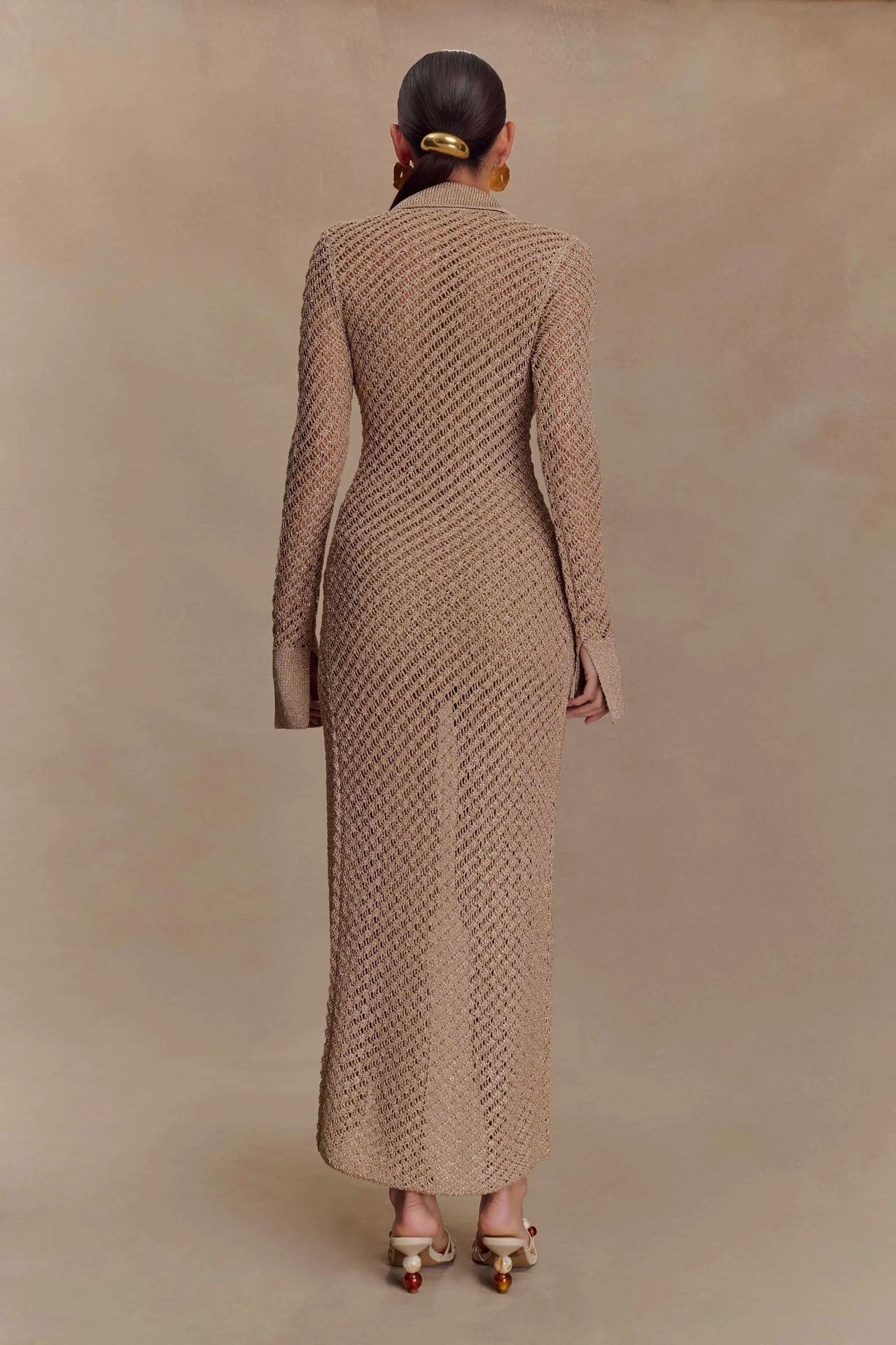Descrizione del prodotto – Abito Elegante Cachi con Dettagli Traforati