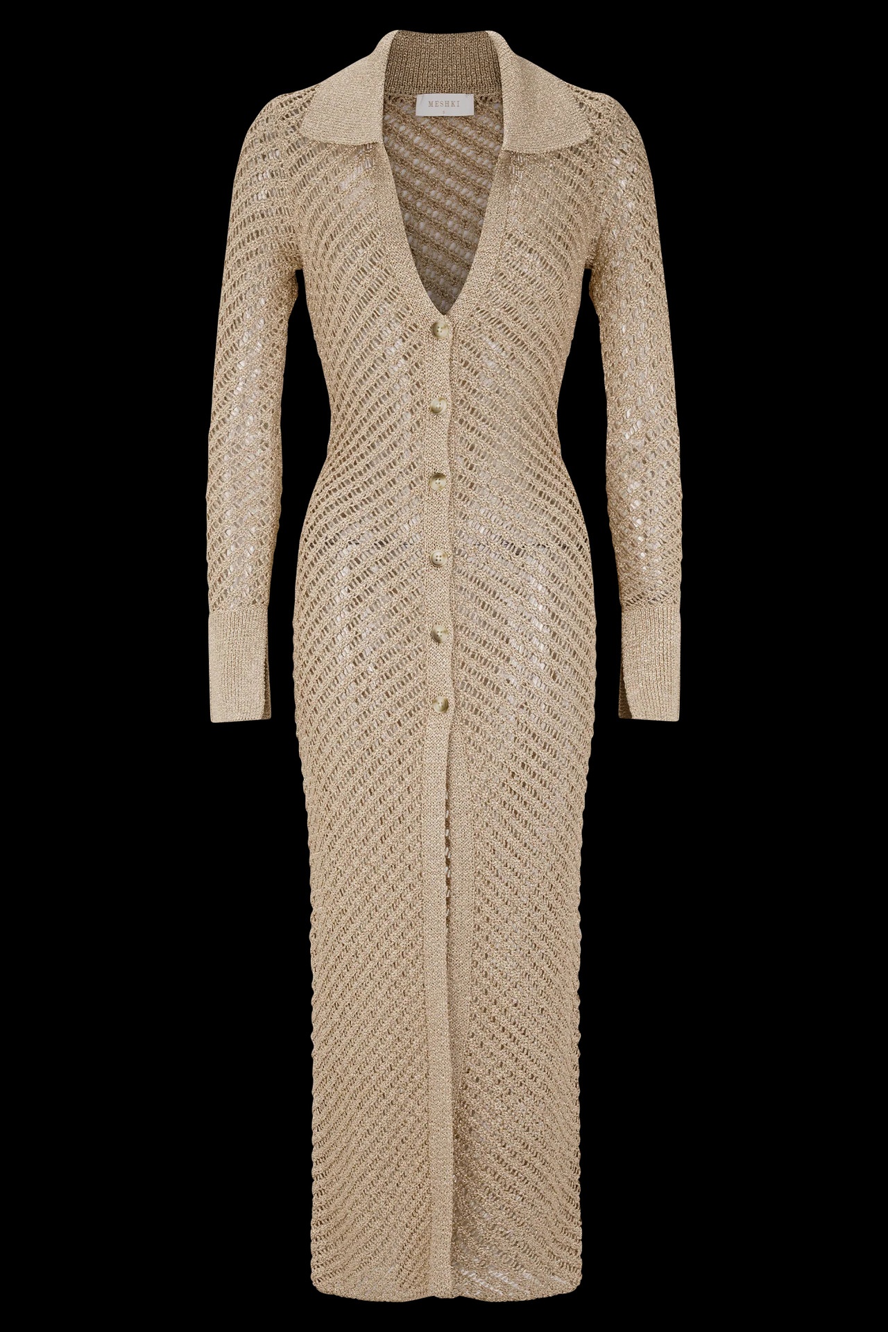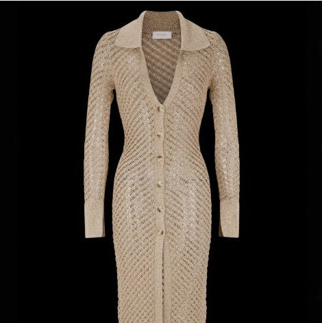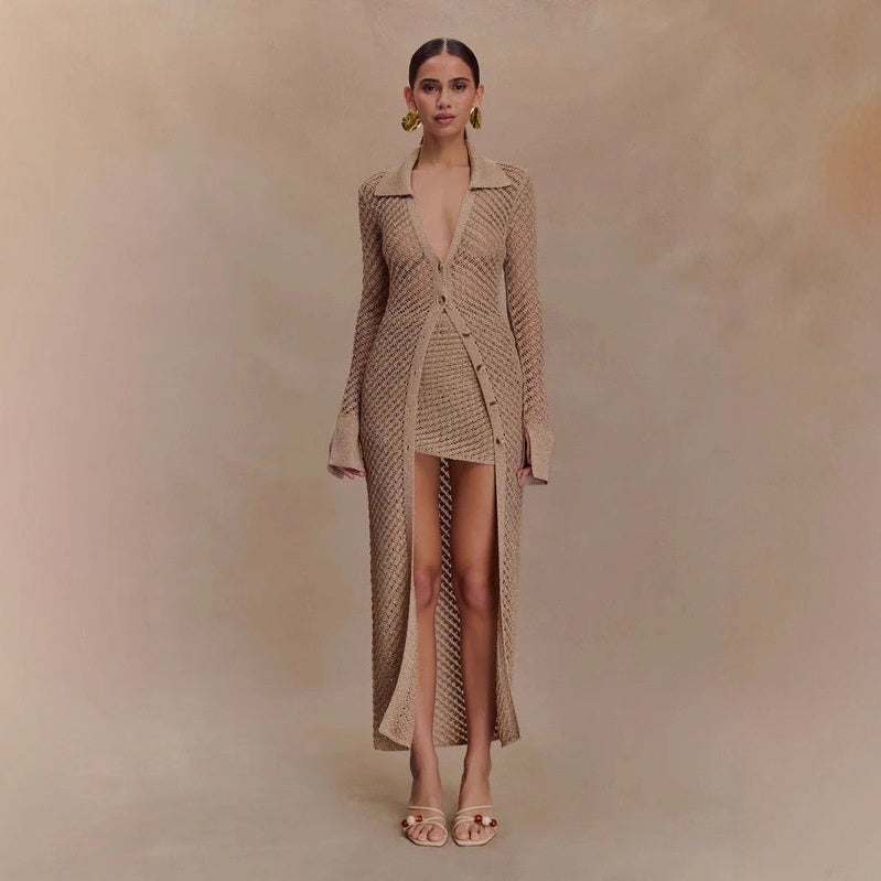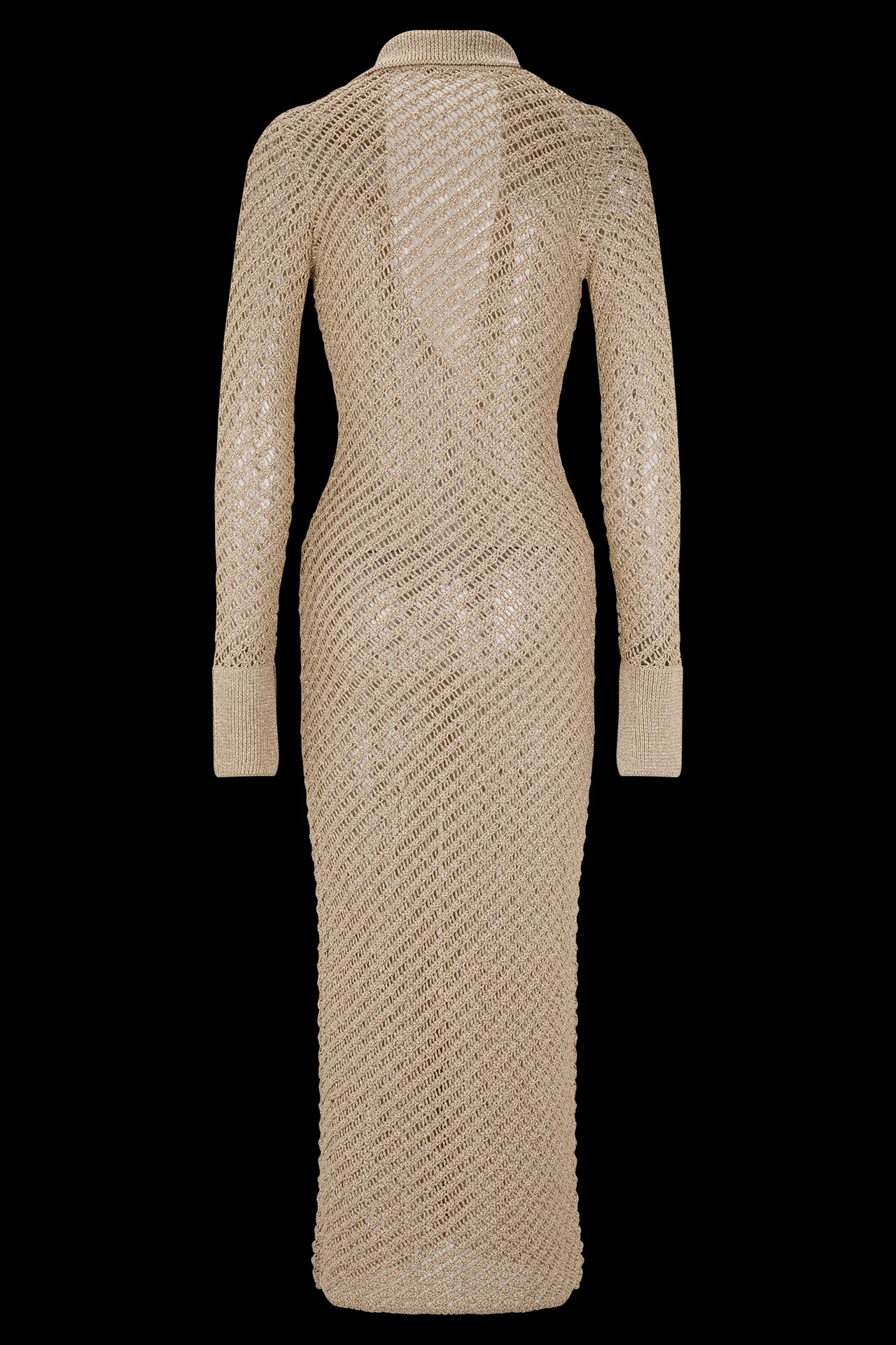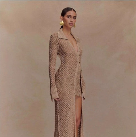 Abito in tinta unita con revers a maniche lunghe metallizzato traforato