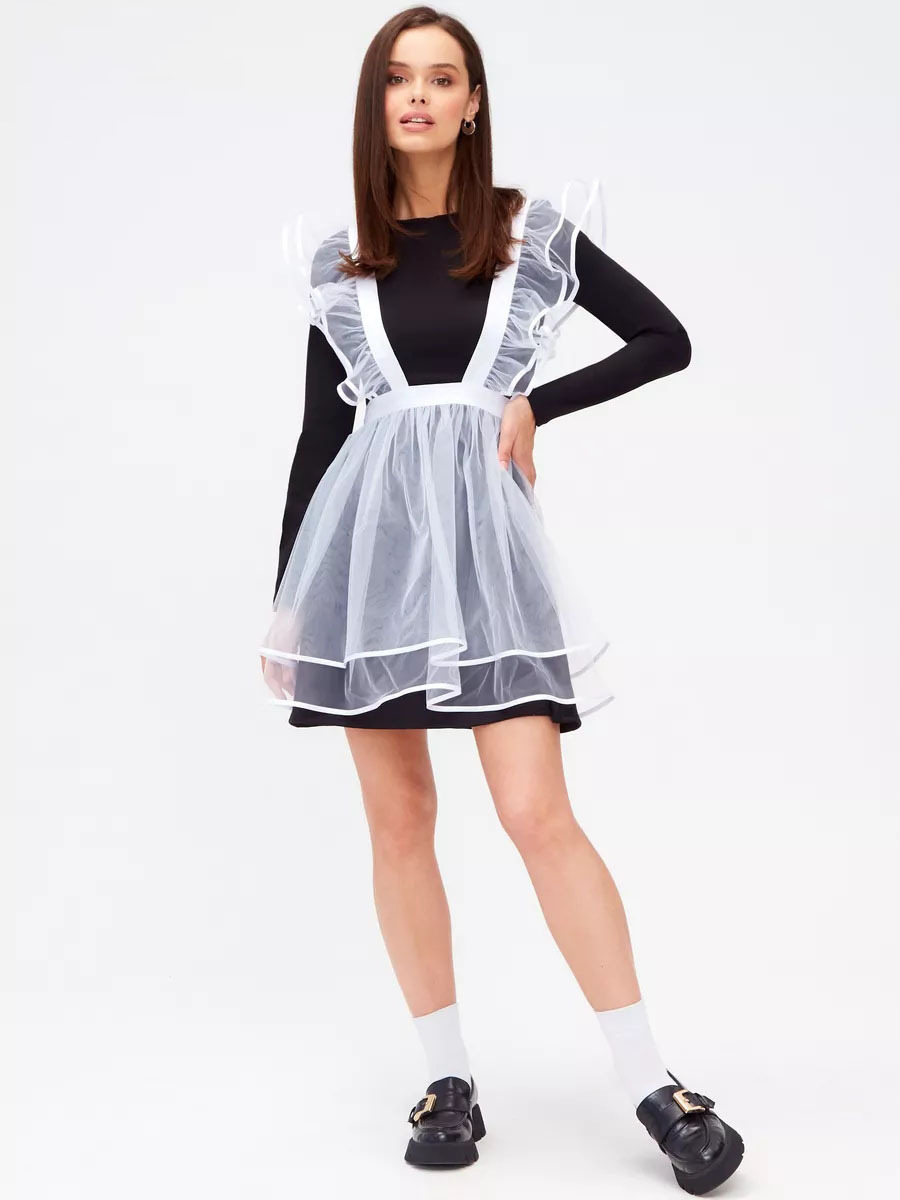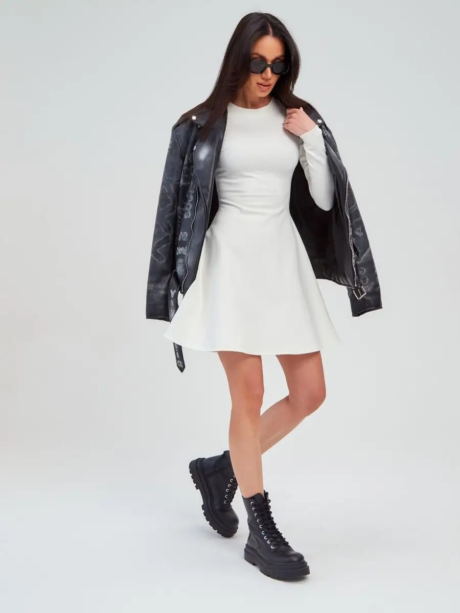 Questo modello in tinta unita, disponibile in nero e bianco, è pensato per la donna che vive tra impegni, sogni e corse metropolitane, ma non rinuncia mai a un tocco di raffinatezza. La gonna a trapezio corta crea una silhouette fresca e slanciata, mentre la vita alta definisce con grazia il punto vita, regalando equilibrio e femminilità.
