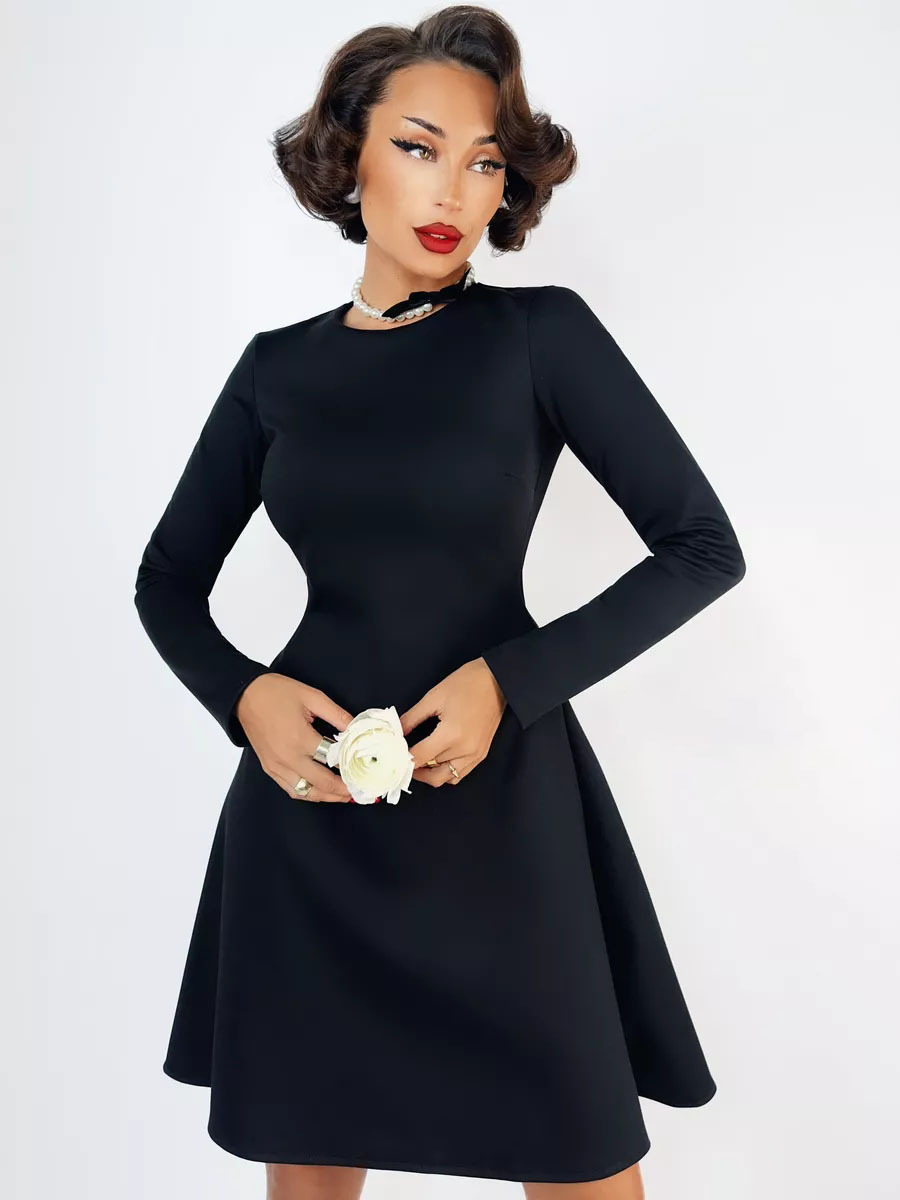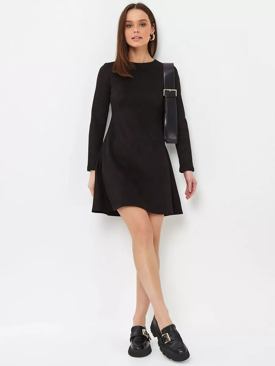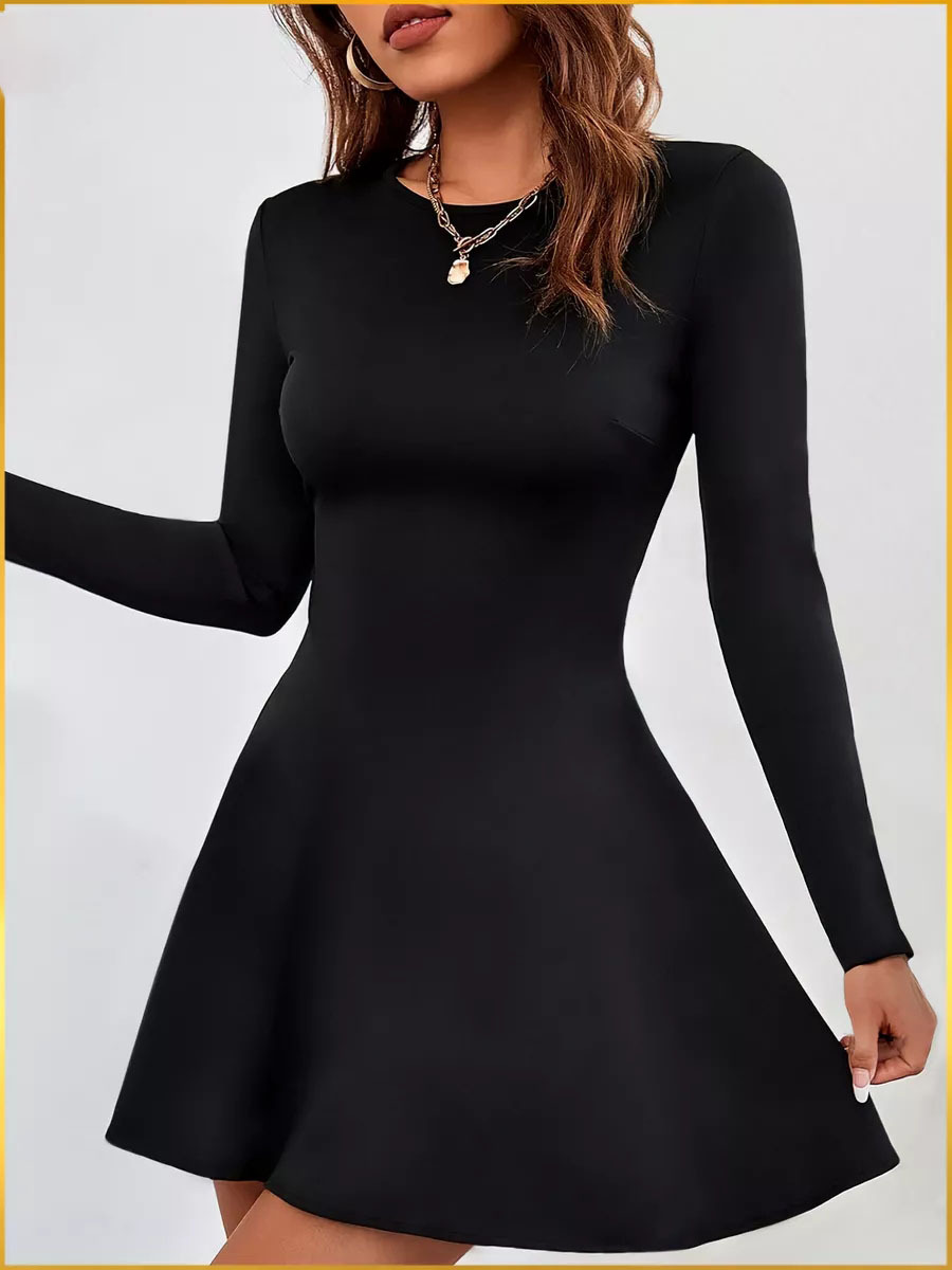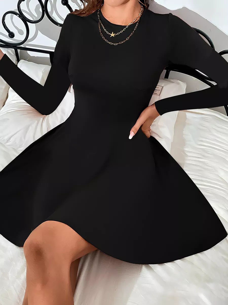 Abito lavorato a maglia a maniche lunghe con scollo rotondo in tinta unita