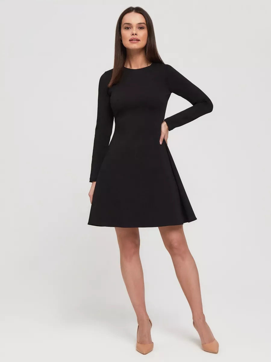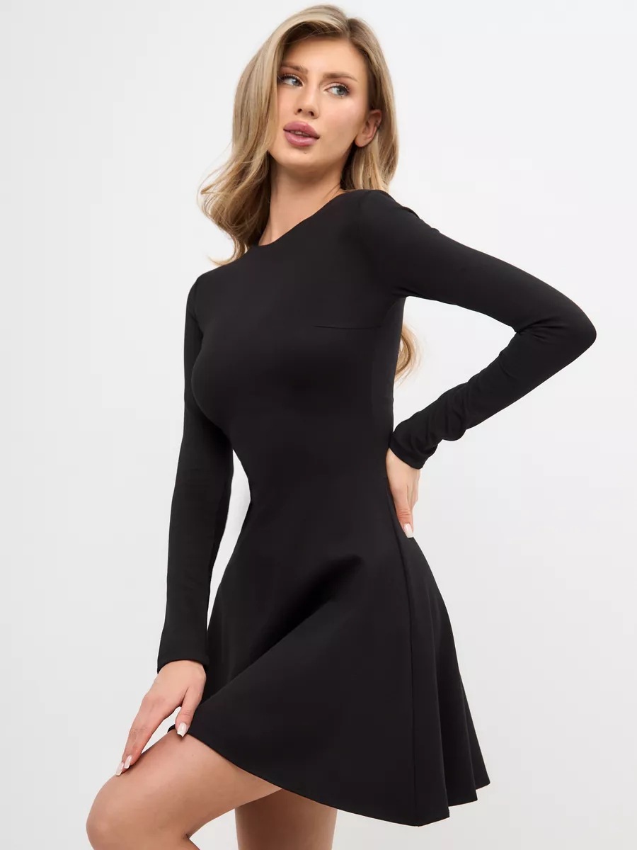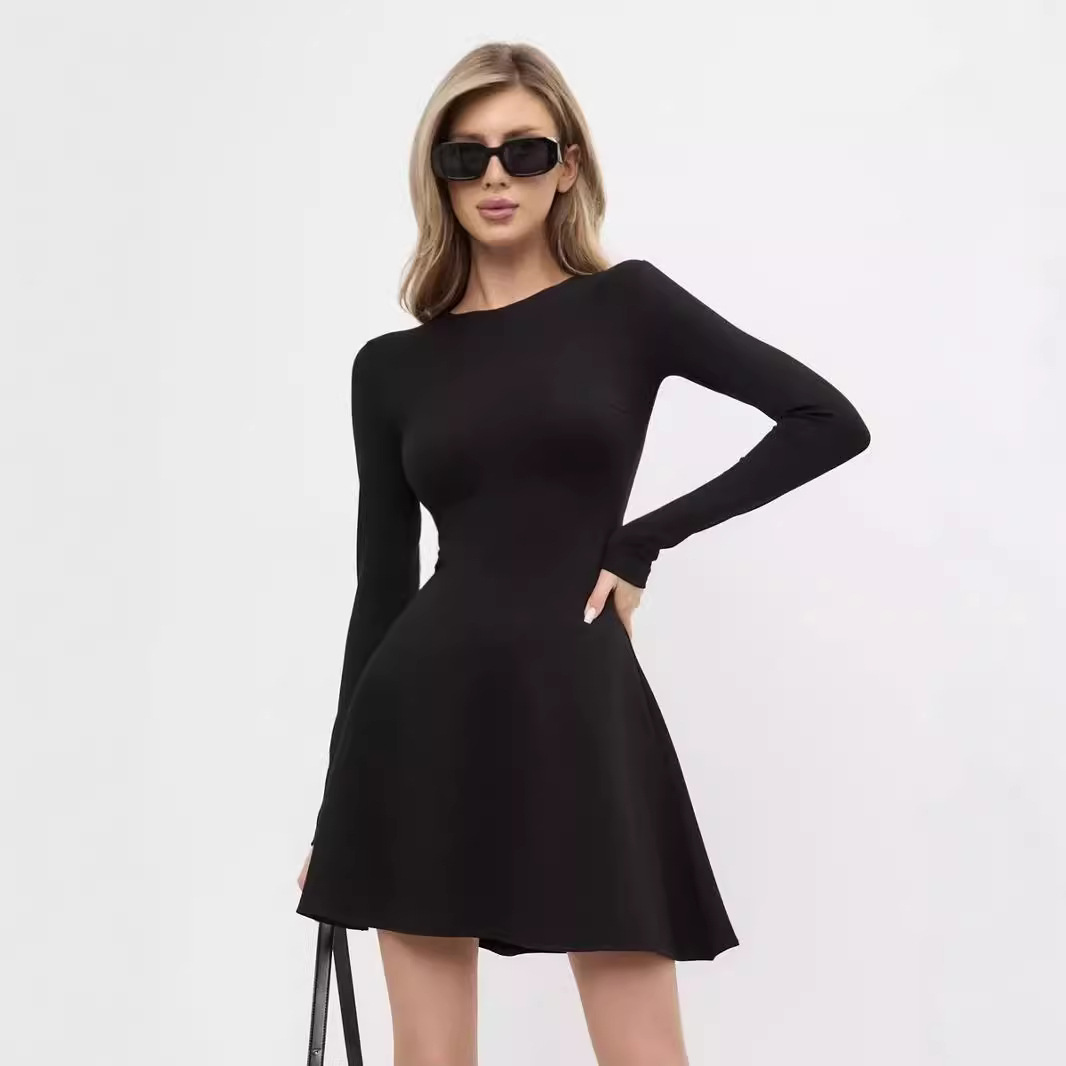 Abito lavorato a maglia a maniche lunghe con scollo rotondo in tinta unita
