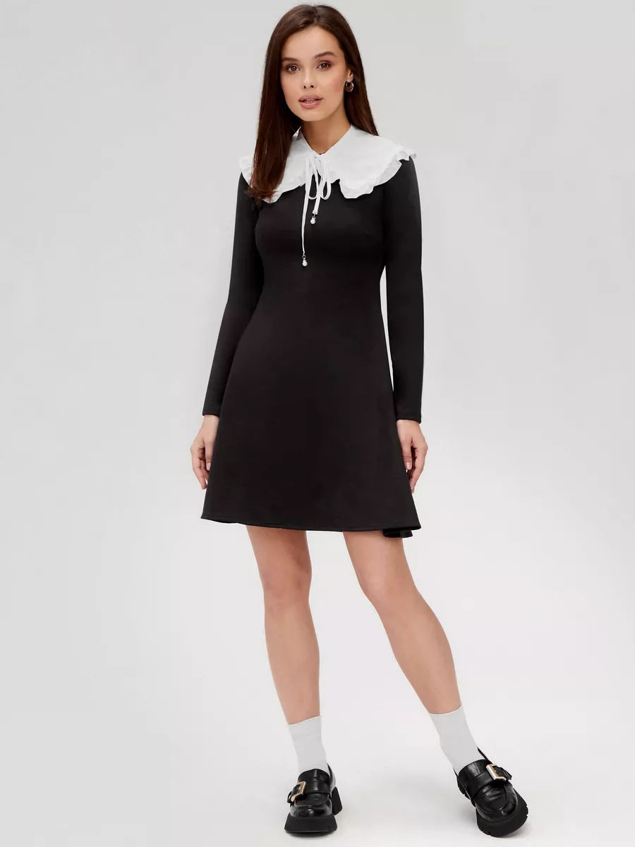 La lavorazione patchwork/collage aggiunge un dettaglio raffinato, un gioco visivo leggero che impreziosisce l’insieme senza sovrastarlo. Le maniche lunghe regolari e il tessuto in cotone romano misto poliestere conferiscono struttura e comfort, rendendo l’abito ideale per il pendolarismo elegante: un capo versatile, pulito, sempre pronto a farti sentire impeccabile.