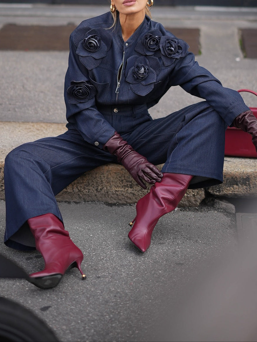 Scegliere questo completo in denim con camicia con decorazioni floreali 3D e jeans a vita alta significa abbracciare un modo di vestire che coniuga esclusività, qualità e charme, trasformando ogni outfit in un’esperienza di prestigio e stile senza tempo.