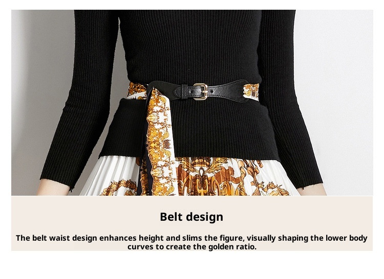 Il top a manica lunga, arioso ma sofisticato, incornicia la figura con discrezione, mentre la cintura valorizza il punto vita aggiungendo carattere, definizione e un pizzico di fascino cinematografico.