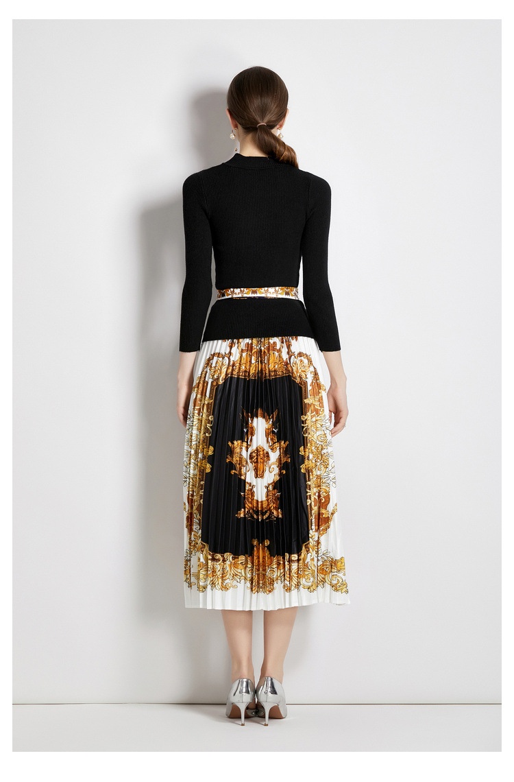Questo completo in chiffon nero, leggero e raffinato, è pensato per accompagnarti nei tuoi viaggi con un’eleganza che non chiede permesso, ma lascia il segno. La sua linea morbida e fluida accarezza il corpo con naturalezza, mentre la gonna di media lunghezza ondeggia ad ogni passo come una piccola brezza portata da lontano.