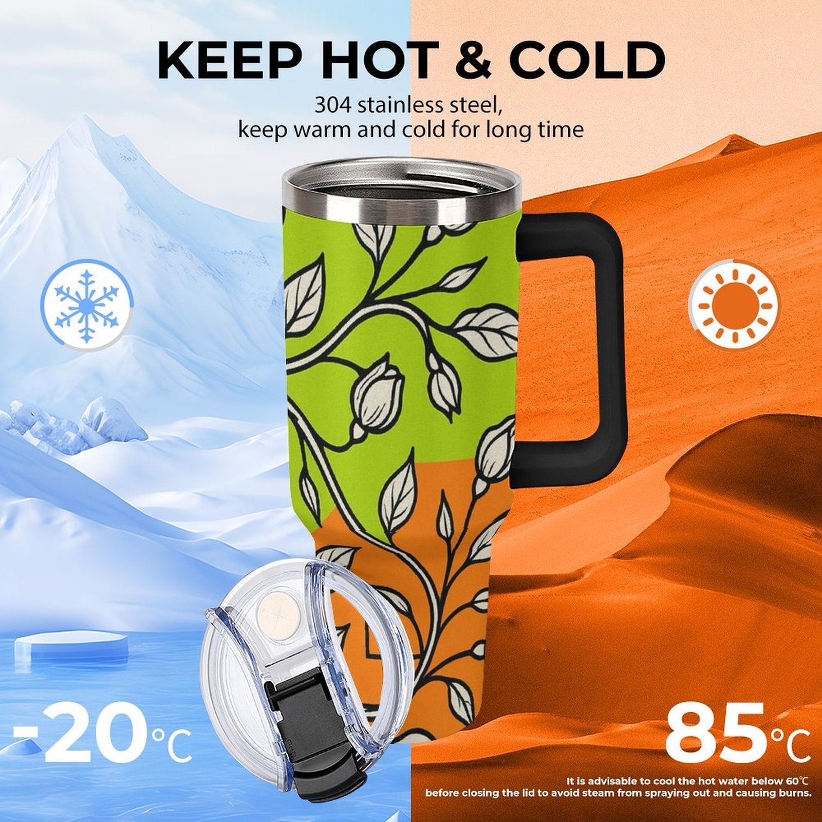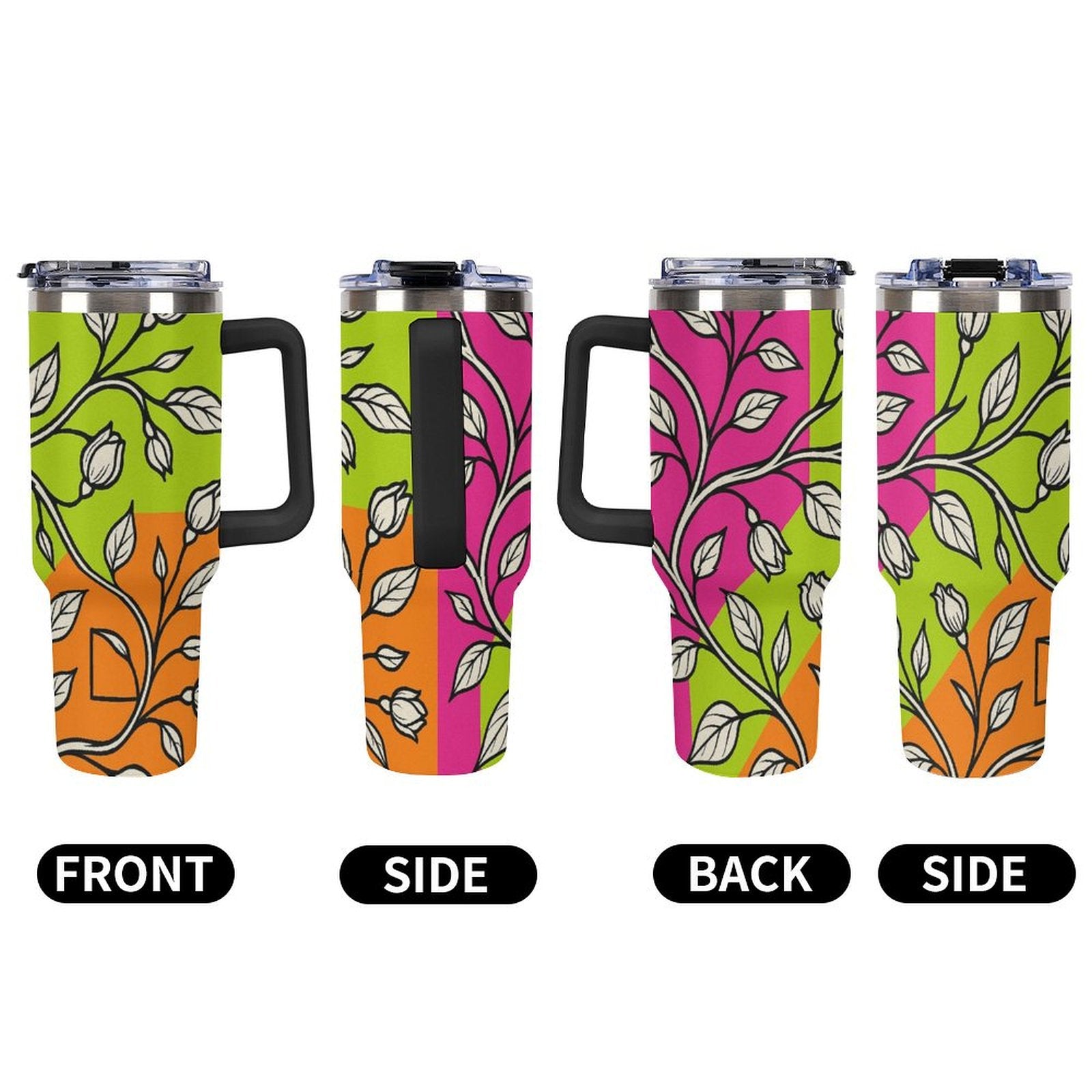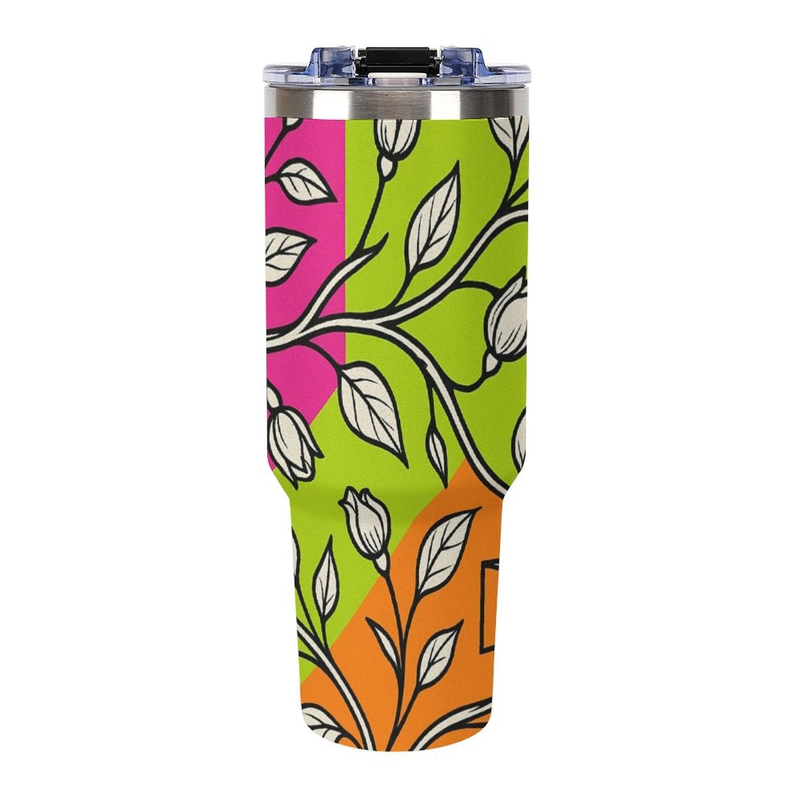 Questo bicchiere da 40 once con manico superiore multicolore è realizzato in acciaio inossidabile resistente con doppia parete isolante, progettato per mantenere le bevande calde o fredde più a lungo. Il manico colorato aggiunge praticità e stile, rendendo questo tumbler ideale per chi è sempre in movimento.