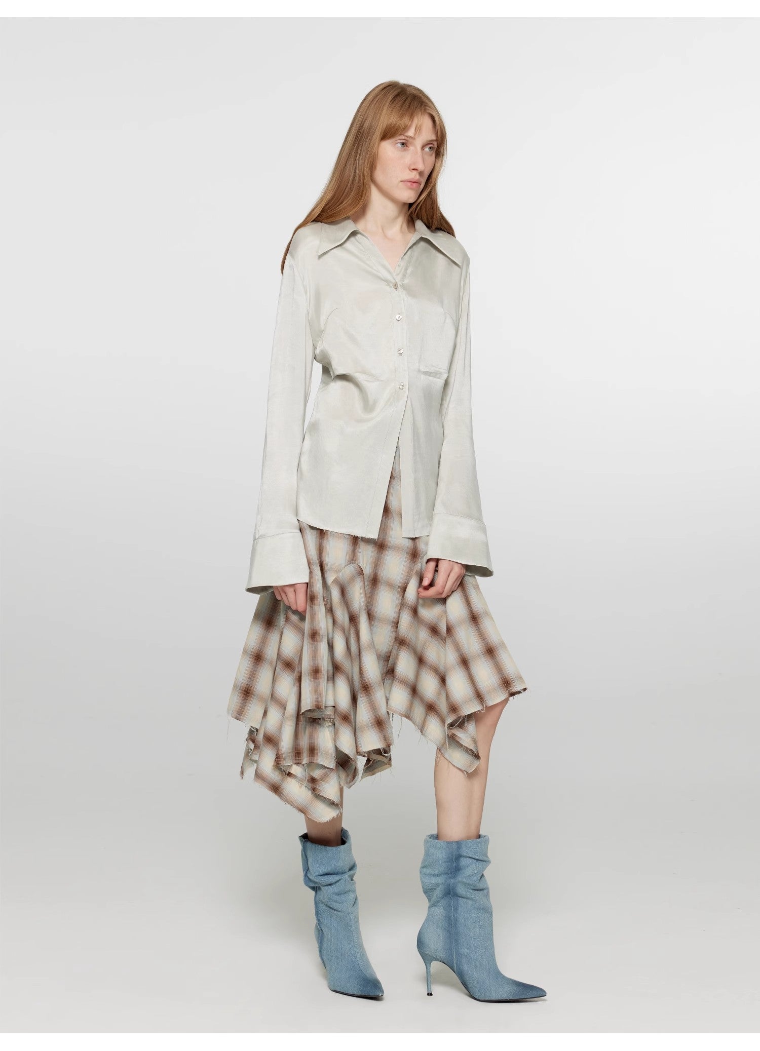 Esclusività e stile si incontrano nella Gonna a trapezio irregolare con taglio verticale a quadri "Freeze Spring", un capo che garantisce unicità e eleganza in ogni occasione. Progettata per chi desidera distinguersi, questa gonna a trapezio è l’essenza della moda sofisticata, capace di valorizzare la figura femminile con un design originale e ricercato.