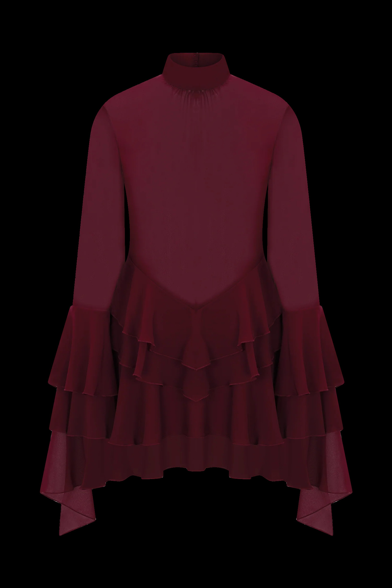 Descrizione del prodotto – Abito Rosso Scuro Patchwork con Gonna a Tubino