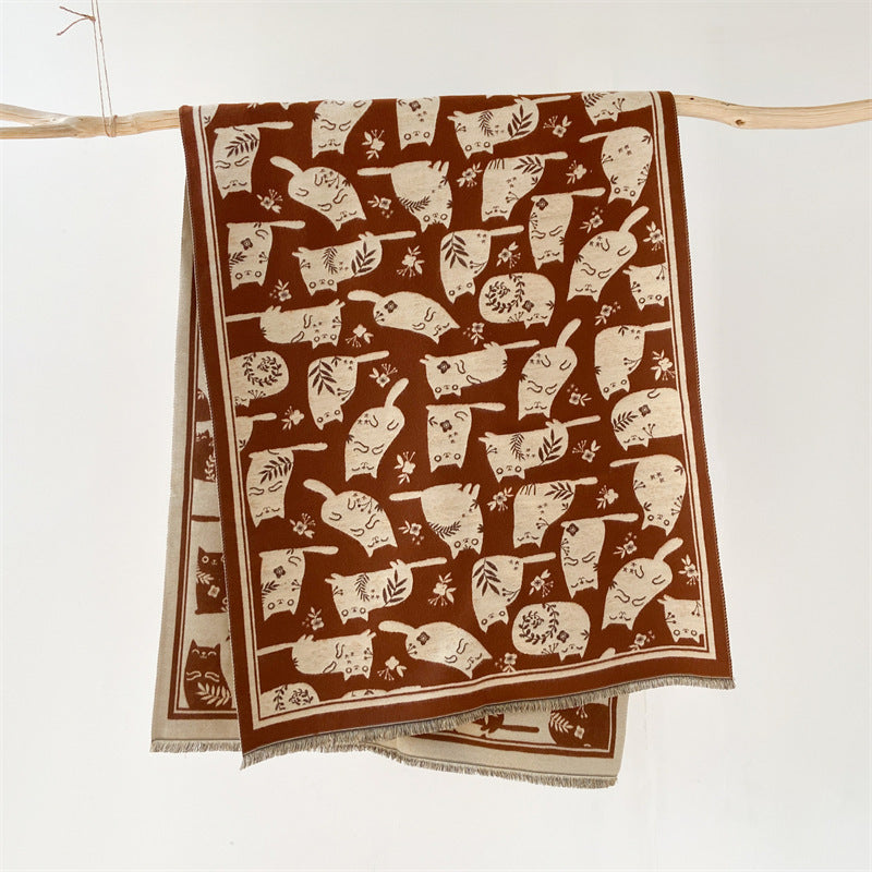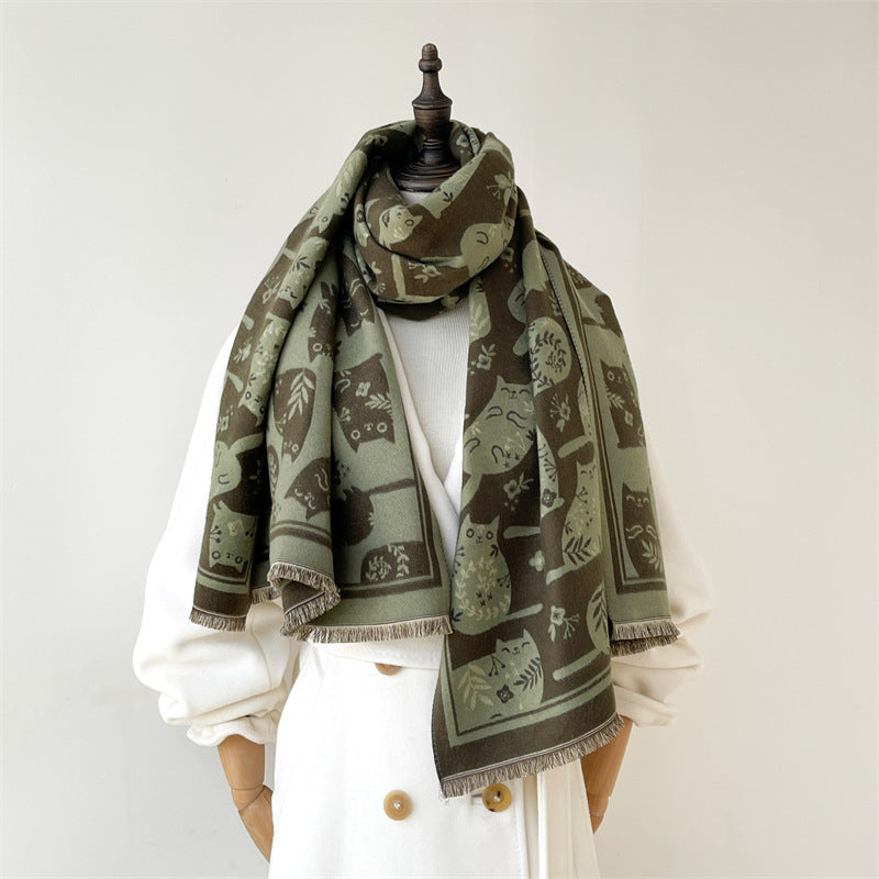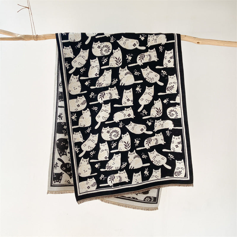 Questa Sciarpa con motivo a gatto in stile coreano è disponibile in edizione limitata per chi desidera aggiungere un elemento speciale e distintivo al proprio guardaroba.