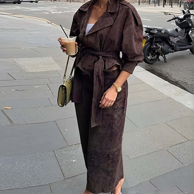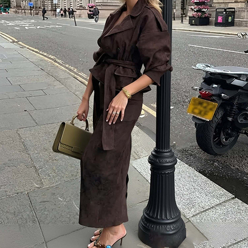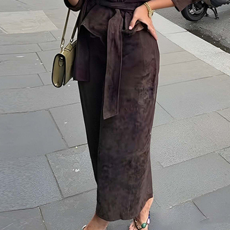 Un completo che profuma di orizzonti lontani, perfetto per chi ama partire leggera ma sentirsi sempre impeccabile. Realizzato in poliestere morbido e resistente, questo outfit accompagna ogni movimento con una naturalezza fluida, mentre la sua tinta unita marrone — elegante, calda, profondamente materica — richiama la terra, la sabbia, il vento che accarezza la pelle nelle giornate in cui il mondo sembra più grande e pieno di possibilità.